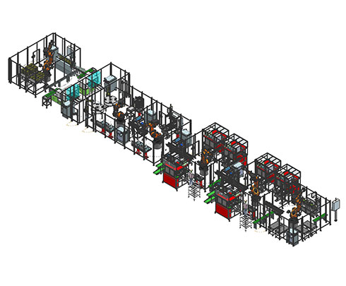 圓柱電池模組PACK自動(dòng)組裝線由上料分選機(jī)、入下支架機(jī)、電芯極性檢測(cè)、裝上支架機(jī)、鎳片裝載機(jī)、鎳片焊接機(jī)、焊點(diǎn)檢測(cè)、貼膠紙機(jī)、保護(hù)板裝載焊接機(jī),半成品檢測(cè)機(jī)、外殼裝載機(jī)、EOL測(cè)試機(jī)、貼標(biāo)機(jī)及靈活人工位組成。
