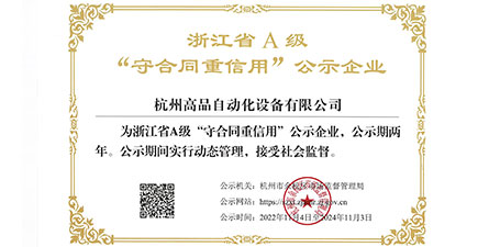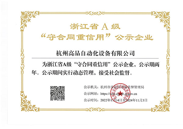 恭喜杭州高品自動化設(shè)備有限公司榮獲